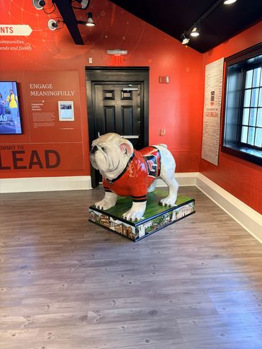 Check-in is straightforward, and while waiting, families can explore a large red room dedicated to the university’s history, academic programs, and, of course, UGA himself. It’s an engaging way to ground students in the school’s legacy before the day even begins.