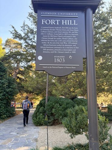 Following the panel, we joined a two-hour walking tour led by two passionate student guides. Their pride in Clemson was clear, and they did a great job highlighting both academic programs and student life. Early stops included the School of Business, Bowman Field—home to traditions like Homecoming float building—and Tillman Hall, the School of Education. These buildings sit at the edge of campus, with downtown Clemson just across the street, reinforcing how closely connected the university is to the town.